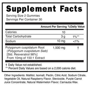 Resveratrol Gummies Supplement - Support Heart, Brain & Cellular Health, Sugar Free, Raspberry Watermelon Flavor