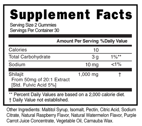 Our gummies are packed with 1000mg of Shilajit per serving. Easily add our delicious easy to take gummies to your daily routine.