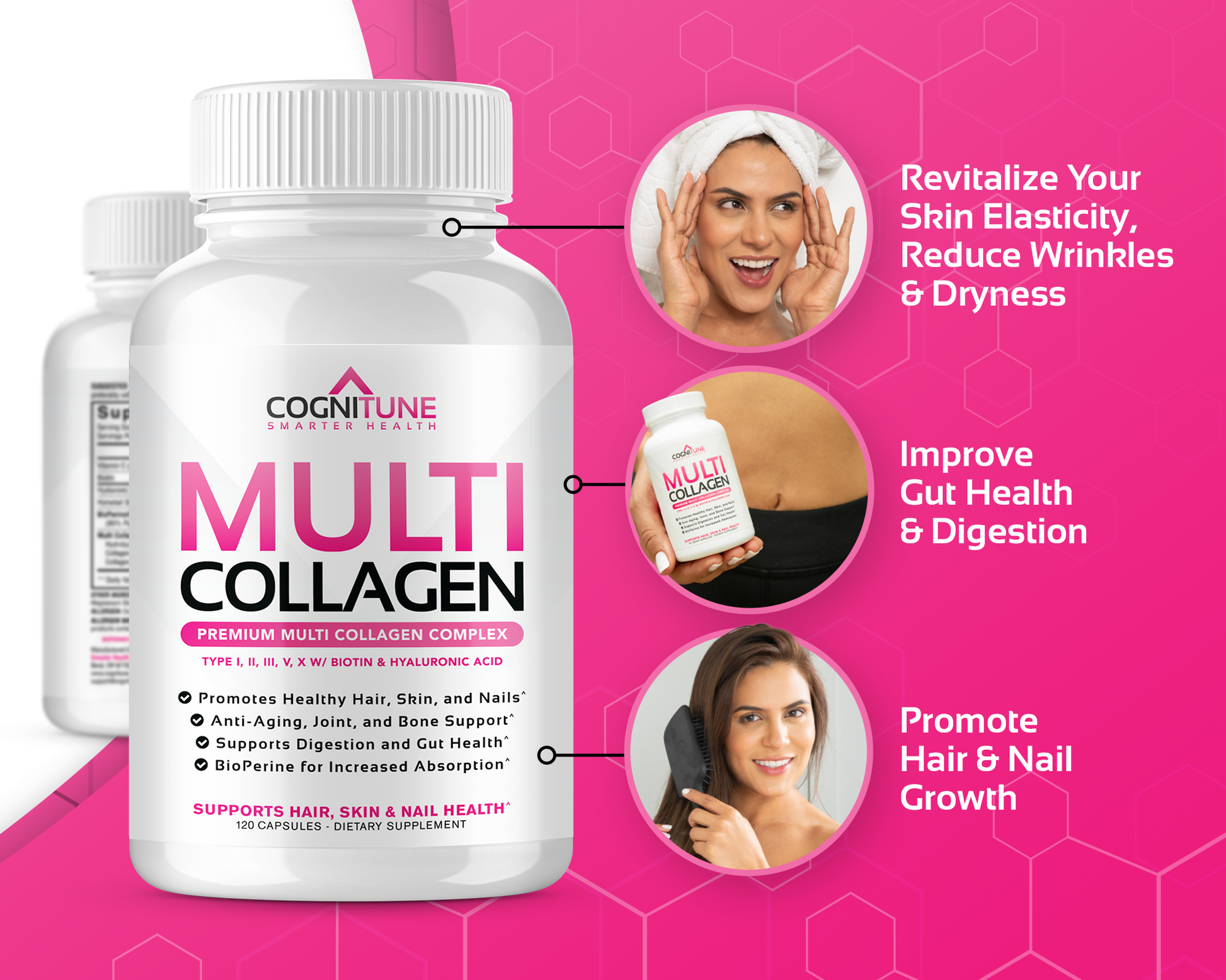 Get all the important collagens your body craves in one easy serving—Types I, II, III, V, X! Help your skin stay bouncy and smooth, your joints and bones strong, and your hair and nails tough and gorgeous. Want the secret to looking and feeling great at every age? This is it! Example: Imagine waking up with less joint stiffness and seeing glowing skin in the mirror—all thanks to your morning routine.